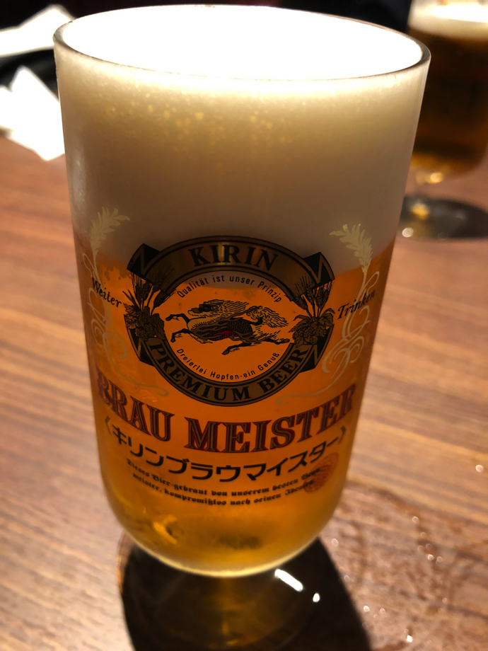 麒麟麦酒のダーク系ビールというかブラウマイスターは濃い味のビールで大変好みなのだが、最近酒屋で売っているのは見たことがない。美味い、美味いと一気に飲んでしまった。とりあえずのいっぱいの後で、ようやくビジネストークがスタートした・・・。