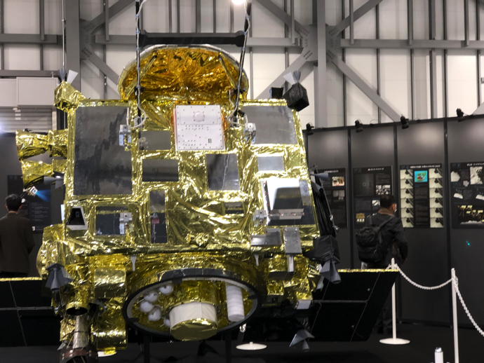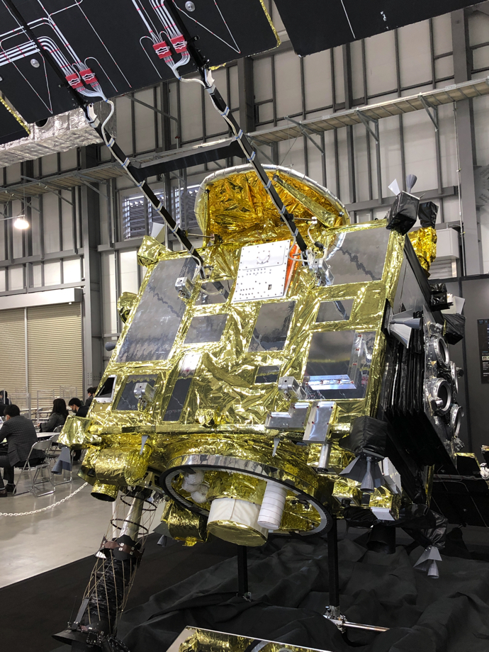 実際に見た「はやぶさ2」(模型)は、想像以上に大きかった。打ち上げの時は、全体が折りたたまれて小さくなった状態だったことは理解できる。宇宙空間に飛び出してから順番にパーツを展開してこの大きさになるのを想像すると、背筋がゾクゾクした。人類のご先祖さまがアフリカの谷から脱出して(彷徨い出して)以来、人類はともかく見たことのないところに行きたがる生き物だった。「はやぶさ2」は、そのどこか知らない遠くに行きたいという思いを実現するための道具の一つなのだ。それを下町の工場が支えているというのは、なんだか「全人類的協調」の証のようでとても嬉しく思った。
