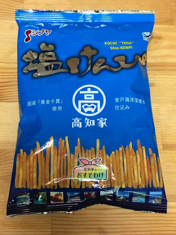 高知と言えば忘れてはいけないものがもう一つあり、さつまいものかりんとう、芋けんぴだ。河内市内のスーパーや土産物屋に行けば、それこそ数十種類(大袈裟かな)ものケンピがあふれかえっている。一度に何種類か買って食べ比べるのだが、いつも気に入ったものを忘れてしまう。記憶に残っているのはJR高知駅の土産物売り場で売っていた自家製だったが、あの店は今でもあるのだろうか。このパッケージは初めてみた気がするのでお試しに買ってみた。POPには高知市内では一番普及している製品らしい。知らんかった。
