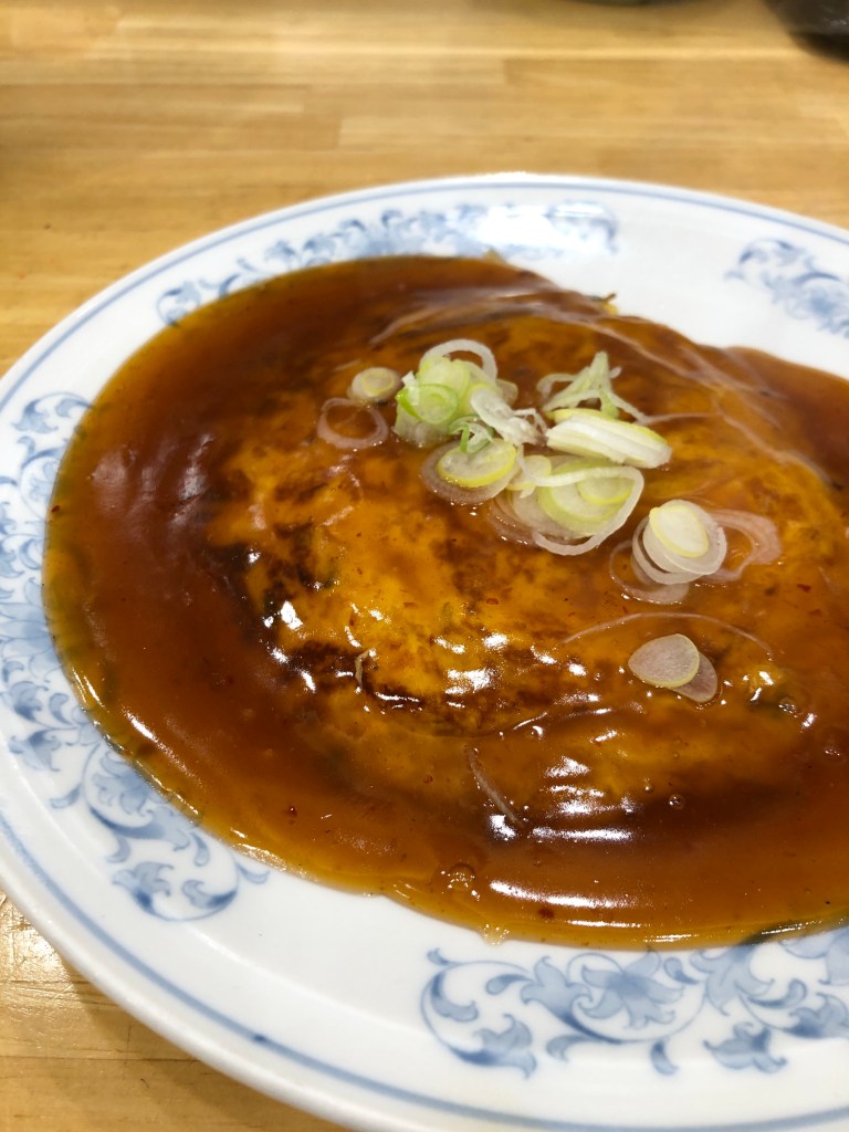 そして月替わりのメニューは天津飯の頭というか蟹玉あんかけなのだが、これを単独で食べると実に卵を食べた気になる。卵焼きのあんかけと思えば、これはなかなかの実力派だ。ただ、残念なことにカニの存在が薄すぎる感もあるのだが・・・。個人的な要望として、彩りも兼ねて紅生姜なぞを乗せてもらいたい。