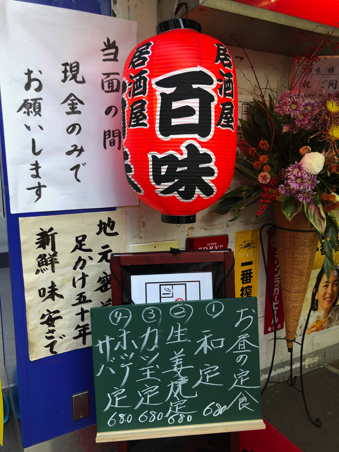 コロナ前は昼時でも高齢者の団体が押し寄せて、「昼宴会」と「一人飲み」が混在する賑やかな空間だったが、流石に今の時期は客が4−5組くらいで、それも二人組がちらほらいる程度。復活まではまだまだなのだろう。従業員の数は潤沢で最盛期の賑わいの時期よりも人数が多いのが、現在のコロナ体制をよく表している。恐る恐る従業員に定食以外のメニューはできるのかと聞いたら、できるというので焼き鳥を注文した。なつかしの砂肝で、辛い味噌がついている百味スタイルが健在だった。