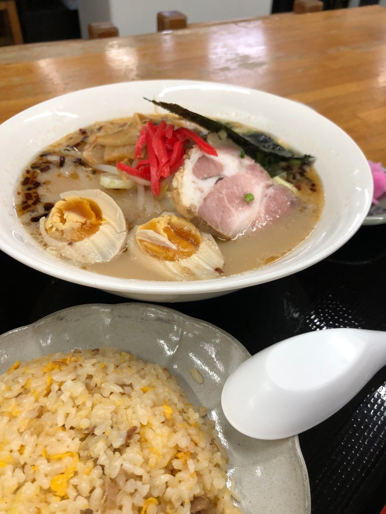 昼間に行ったので、とりあえずのランチの定食を見てみると、何やら不思議な代物があった。居酒屋らしさがカケラもない、豚骨ラーメンとチャーハンのセットだ。他には当然ながら刺身定食とか天ぷら定食などがしっかりと地位を主張しているのだが。ついふらふらととんこつラーメンを頼んでしまった。これが予想外の正解で、なんというか東京でとんこつラーメンが当たり前になった時期のとんこつラーメンだった。今のように進化系とんこつラーメンが主力になる前のノスタルジックなもので、味はシンプル.紅生姜が嬉しい。