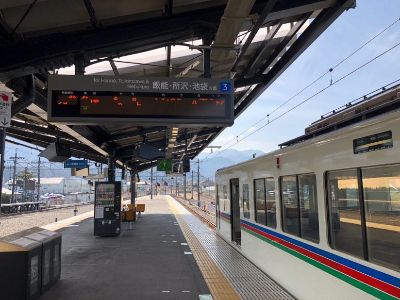 そして小一時間もかからずに西武秩父到着。秩父線沿線は、延々と山の中の谷間を潜り抜けていくので、秩父盆地に入った瞬間に視界が広がる。確かに古代であれば、ここは別の国だっただろう。似たような感覚だと、中央高速で笹子トンネルを抜けて山梨に入り甲府盆地を見渡した時に近いか。このホームの向こう側には秩父の象徴武甲山がひかえているのだが。ここからではよく見えない。