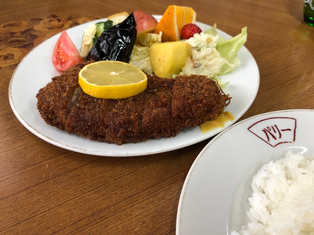 ものすごく気になっていた秩父パリー食堂のカツライスを食べに行ってきた。見た目はオムライスのカツ版というかフルーツとサラダがついたカツ定食みたいな感じだった。気になるのがレモンの厚さで、これはどう判断するべきだろうか。カツの色が濃いのでソースがかかっているかと思ったが、単純に濃いめにあげてあるだけだった。卓上にあった普通のソースをかけて食べることにした。もう一点気が付いたのだが、ライスがのっている皿の「パリー」の文字で、カフェ時代の名残なのか、おしゃれ感がたっぷりだ。