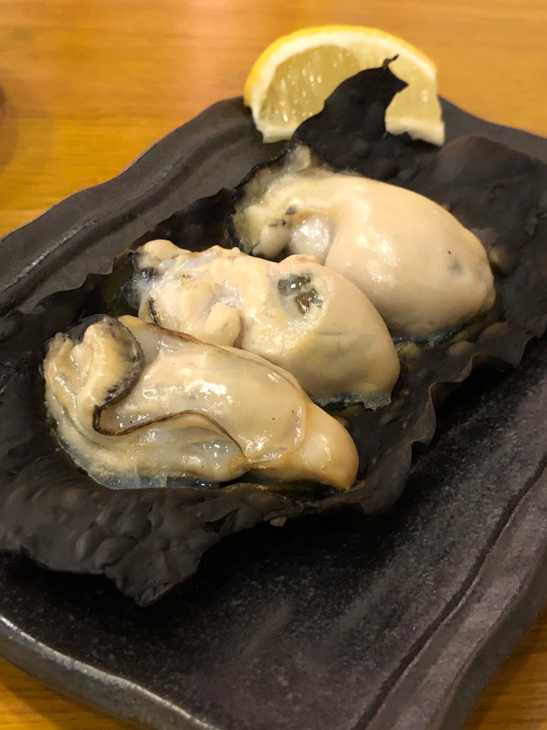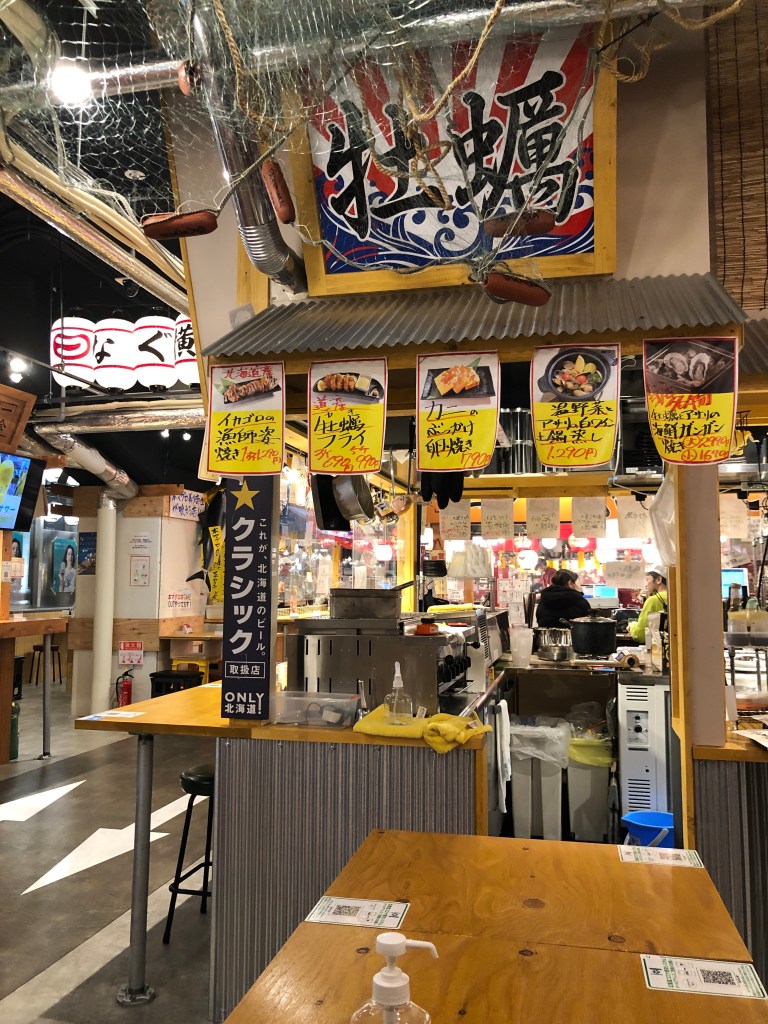 入り口にあるのは「牡蠣」を食べさせる専門店で、「私は貝になりたい」という名前だった。昔の映画のもじりだろうが、なかなか楽しい。牡蠣を昆布の上に乗せて焼いた昆布焼きが実にうまい。