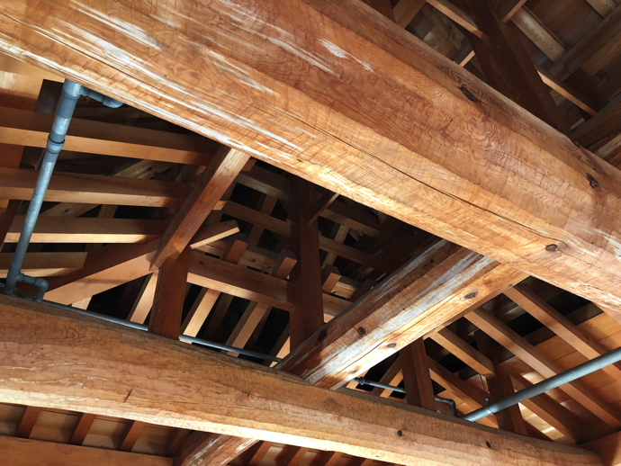 白石城再建は築城当時の工法で再建するというプロジェクトだったようで、城内部では木造建築のありさまが見られる。この天然木の組み合わせと造作は美しいものだ。石積みの幾何学的な造形美とは違い、何やら人の手の力を感じる美しさだと思う。梁や柱に使われる大木がすっかりなくなってしまったので、もはやこの手の木造建築は不可能なのだそうだ。その辺りは国産木材を使った集成材の活用でなんとかできないものか。少なくとも杉と檜は70年物が日本中にゴロゴロしていて、花粉症の元凶なのだから、国費投入で是非対策をしてほしいものだ。