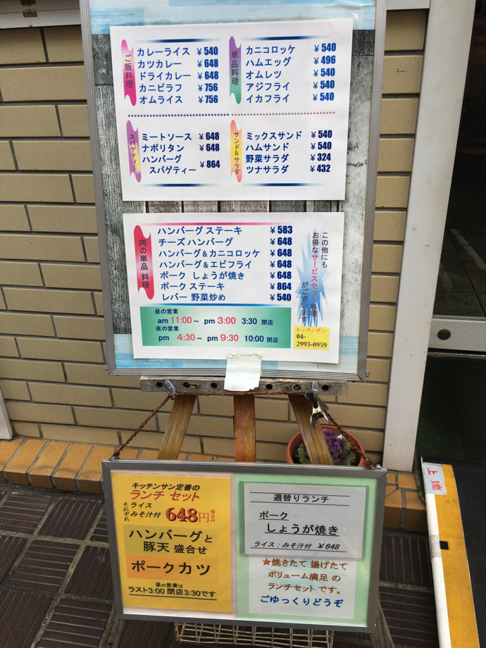 こちら地元の洋食屋の店頭メニューを見れば、なんとも驚異的な価格帯で、近くにあるファミレスなど目じゃないよというびっくり価格だ。一つ一つの料理がなんともユニークで、ファミレスで出てくる同じ名前のものとはずいぶん違っている。カニピラフとかポークステーキなんて、ファミレスでは絶対食べられないだろうと思う。しかし、この店のユニークメニューで最大のものは、ランチセットについてくる豚天だ。