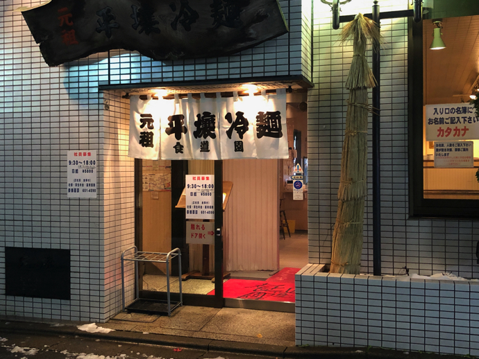 掘り返してきた3年前の写真を見返していて気が付いた。ずっと盛岡冷麺と思い込んでいたが、盛岡冷麺発祥の地? 食道園の暖簾には平壌冷麺とかいてあったのだ。記憶の中での間違った刷り込みがどこで起きたのか不思議だ。よく行く「ぴょんぴょん舎」では盛岡冷麺と表記されているから、そこからの記憶かもしれない。スーパーで売っているチルド冷麺も「もりおか冷麺」とかいてあるからかもしれない。