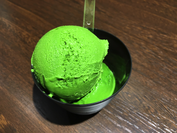 お茶フレーバーのアイスクリームを作るとき、それなりの緑色に仕立てようとすれば、びっくりするほどの抹茶を使うことになる。また、緑茶の緑色はあっという間に退色するので、作り置きをすることが難しい。抹茶アイスが高級で高価なものになる理由だ。スーパーなどで売っている量産品のお茶アイスクリームは当然ながらお茶の含有量は少なく、何らかの対応をすることになる。
