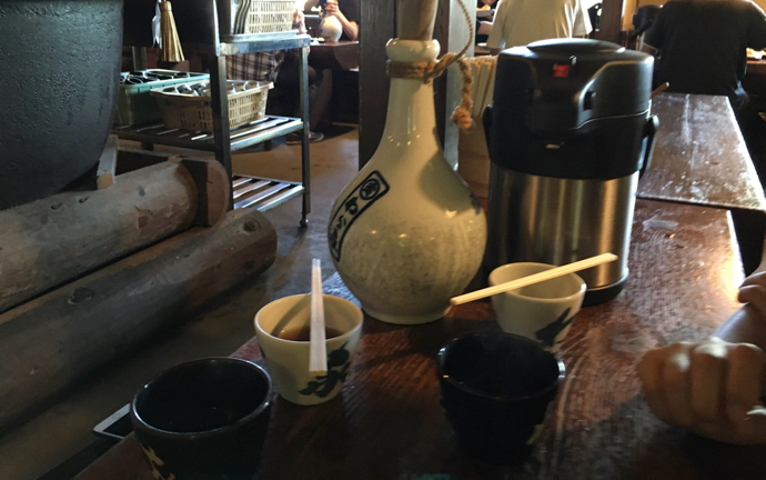 うどんのつゆは熱々のまま、おおきな徳利に入って出される。徳利が熱くて持てないほどだった。つゆは使い放題らしい。ネギや生姜の薬味も取り放題。普通であれば天ぷらやら何やらをサイドアイテムとして頼むところだが、この店ではうどんのみで問題ない。忘れてはいけないのがうどんを人数分より多めに注文することだ。人数分しか頼まないと物足りなくて、あとから注文することになるのは間違い無いから、多めに頼むのが定石だ。