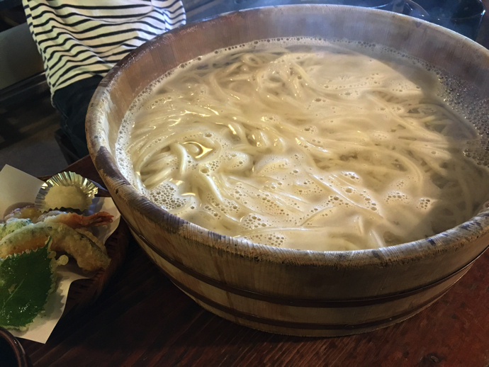 同行した知人が注文したのはタライうどんで、大きな木桶というよりタライに並々とうどんが入っていた。初めて食べた讃岐うどんはいわゆる釜揚げうどんだったことになる。うまそうという思いと、うどんだけでこんなに食べられるものかという疑問が湧き出したが、なんの心配もいらなかった。人数分に1−2人前追加したうどんを4人でしっかり平らげた。知人によれば、この店はちょっと高級店なのだという。値段を聞いて、讃岐うどんの高級店とはこんなに安価なのかとびっくりした。その後、郊外にあるうどん屋などに連れて行ってもらった時に、ようやくその「値段の高さ」が理解できた。郊外店のうどんが安すぎるせいなのだが、高級店のうどん一人前は東京の普通のうどんよりも安かった。