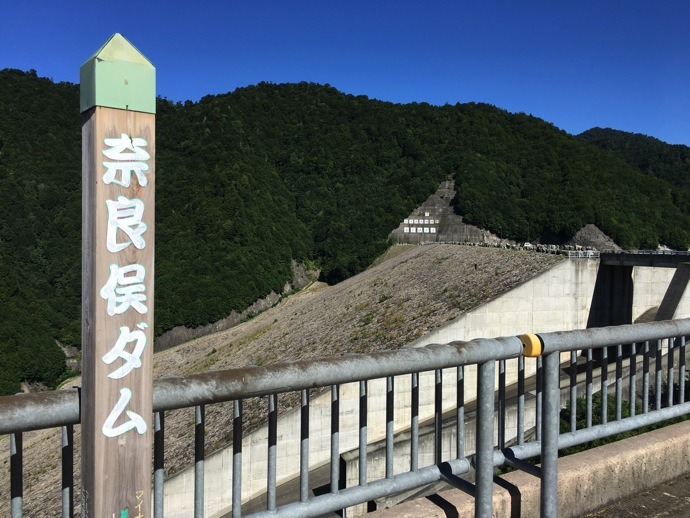 ダム巡りを初めて、おそらく100箇所以上のダムを見てきた。最初のうちはあまり気にしていなかったが、美形なダムというものは確かに存在する。設計者の意図は極めて実用的な水資源管理のための建造物だと思うが、結果的に巨大建造物特有の美しさが生み出される。その造形美はダムの両サイドを固める山の連なりなどと調和してできるものだから、狙ってできるものでは無い。また、ダムの下側にダムを見上げる場所があり、そこから適切なアングルで見ないと、「美」を見つけることが難しい。東日本のダムを見てきた中で、おそらくこれが一番だというのが群馬県の山奥にある「奈良俣ダム」だ。