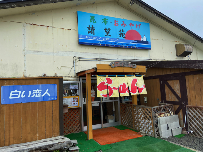 この土産物屋の西側の入り口に向かうと、なんとラーメンの暖簾がかかっている。つまり、日本最東端のラーメン屋・食堂というわけだ。実は、根室にある名物エスカロップを試す機会を放棄して、「日本最東端でラーメンを食べる」と思いついてしまったので、納沙布岬の駐車場に車を止めた後、あたりに散在する土産物、食堂などを物色した上で見つけたのがこの店だった。最初から食べるものは決めていたので迷うことはない。らーめん、それだけだ。