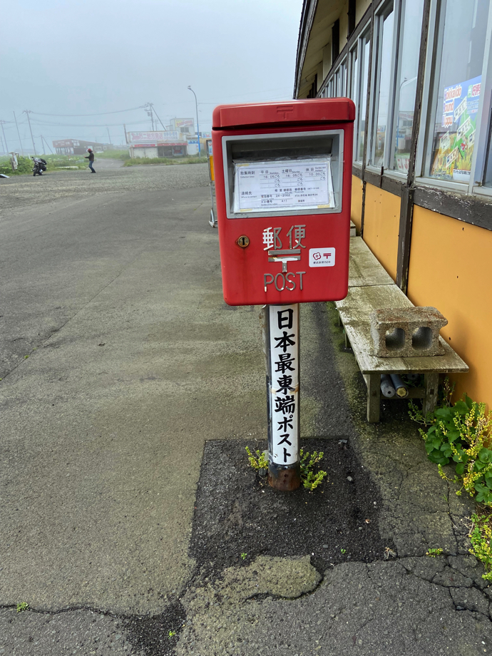 根室、納沙布岬。言わずと知れた日本列島の最東端だ。北方領土が返還されたら東の端はもう少しずれていく。現時点で民間人がいけない場所を含めれば、小笠原諸島の先あたりにある島が一番東の場所になるはずだ。ただし、最東端のポストとか、最東端の〇〇という言い方は、人が住んでいるところでなければ生まれないので、このポストはかなり長生きしそうだ。
