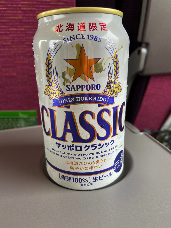 仕方がないので、駅近くのコンビニで、一本だけ冷たいビールを買う。ちょっと悲しい。銘柄は迷うことなく、北海道限定のサッポロクラシック。全国あちこちにご当地銘柄のビールはあるが、クラシックは一番のお気に入りだ。麦芽100%であればエビスビールとどこが違うのだと言う方もいるかもしれないが、これは飲んでみなければわからない。エビスよりすっきりしているのは間違いないが。