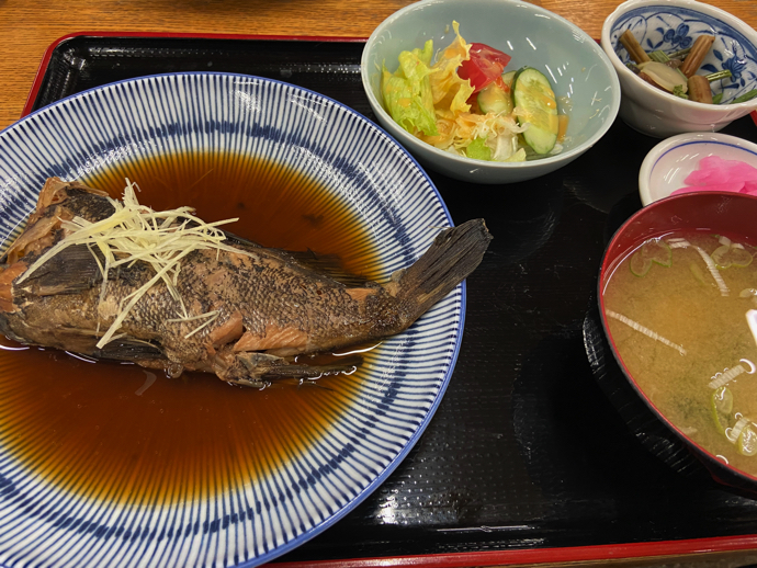 そして、本日おすすめと言われたクロムツの煮付け定食、お盆に乗り切らない丼飯もついてきて、値段は500円。これでいいのかと思うような破格のお値段だが、煮付けの味は意外とあっさり目で、夜に出てくる酒の肴とは異なっていた。(煮付けの濃いめのつゆを白飯にかけて食べるが好きなのだけどなあ)