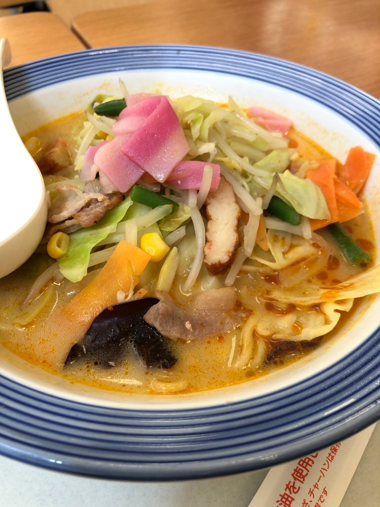 ちなみに比較のためにリンガーハットの普通のちゃんぽんの写真がこれで、当然タンメンではないから野菜以外にも肉や蒲鉾など色々と入っている。具沢山のバラエティー感がちゃんぽんの売り物だろう。だから、野菜以外のトッピングが入れば、それはタンメンではなくチャンポンということだ。