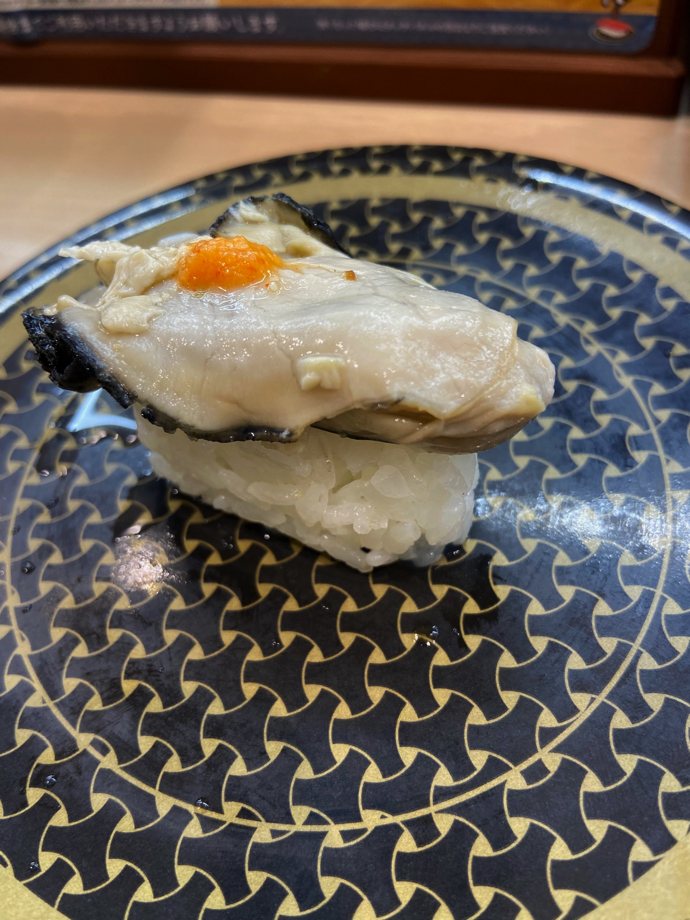 キャンペーン商品は、蒸し牡蠣一貫 100円という高価格帯で、牡蠣自体は大振りだと思うが、ちょっと花がないなあ、などと思いつつパクりと一口で食べた。牡蠣は好物だが、蒸し牡蠣だとちょっと違う食べ物だ。寿司ネタ向きかと言われるとちょっと違う気もする。価格も含めて微妙だなあ。