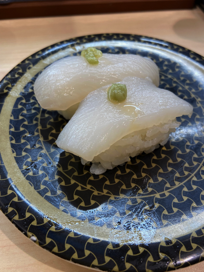 イカもマイカ、スルメイカ、など品種が選べるシステムだった。そして、マジマジとメニューボードを見て確認したのが、イカのわさびトッピング。これには苦笑するしかない。確かに、回転寿司はずいぶん前から、わさび抜きが定番で、回転レーンを回っている寿司にわさびは入っていなくなった。若い世代でワサビが苦手という方が増えたせいだそうだ。わさび入り、わさびなしでの商品提供はロスが多いことから、基本的に「わさび抜き」スタイルの統一された形だ。回転レーンには追加用のわさび個パックが回っている。ワサビが欲しい方はお好みでどうぞと、わさびは取り放題サービスなのに、あえてわさびをトッピングにするのだ。ワサビが特別仕様ということらしい。