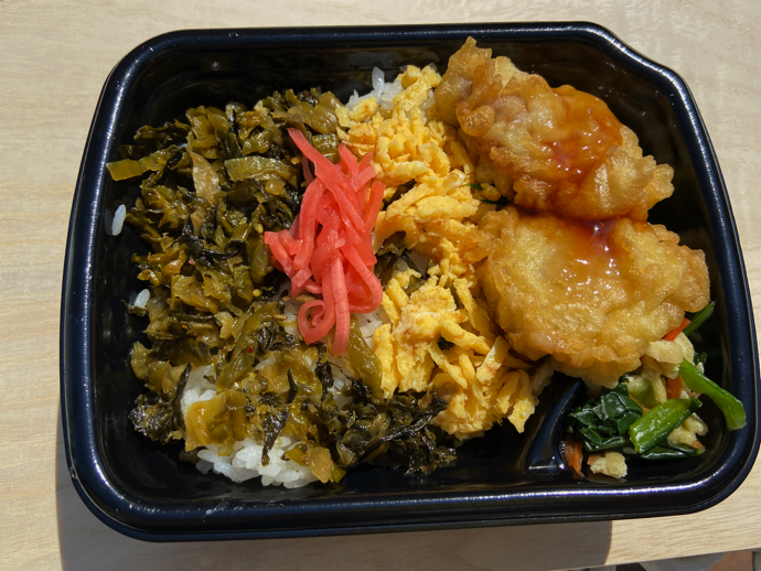 弁当というか「変形どんぶり」というべきか、どちらにしてもすっかり好みになったご飯たっぷりの高菜弁当。そもそもホカ弁とは、あつあつのご飯を食べるためにおかずが添え物的にあるというもの、ご飯が主体でおかずはおまけ(笑)。白飯優先の食べ物だと思っている。
