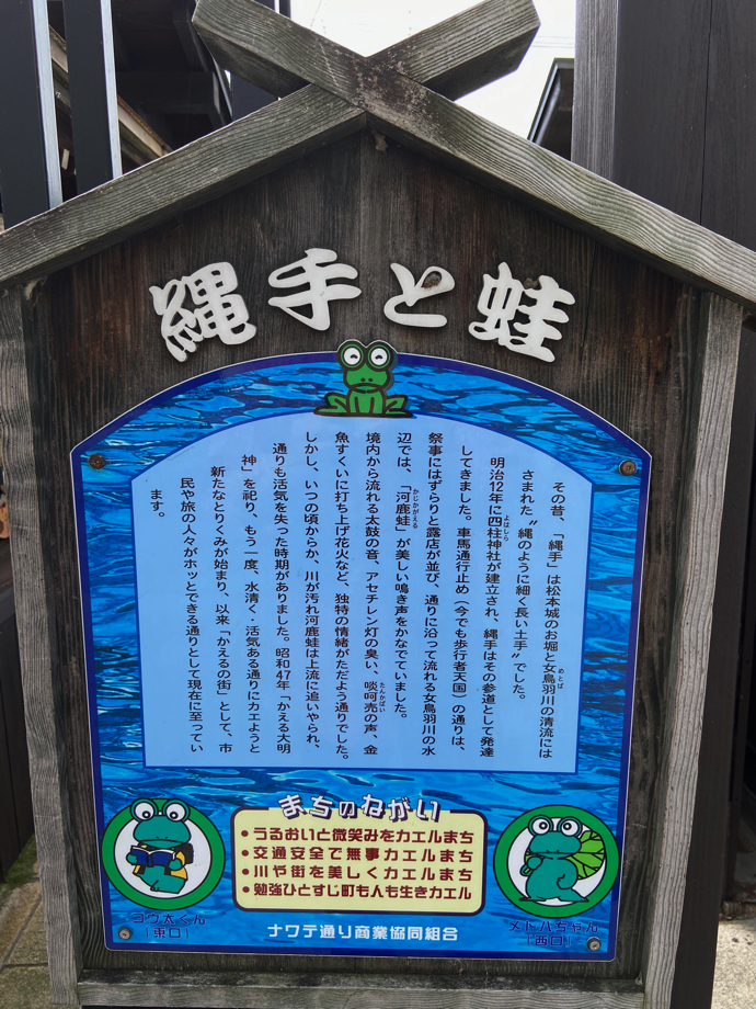 松本城の近くを流れる小さな川がある。先日、某国営放送の旅バラエティー番組で松本城の成り立ちをあれこれと解説していた。この川がお城防衛の主要装置であったということを初めて知った。その川沿いに色々なお店が立ち並ぶ一角がある。土産物屋のような店、軽食の店、陶器屋、骨董品、ベーカリーなど雑多な店が立ちならぶ。ぶらぶら歩きにはなかなかたまらない場所だ。お目当てにしていたベーカリーはなんと休業日で当てが外れたが、陶器屋で安い蕎麦猪口を二つほど手に入れ、ほぼ満足した。