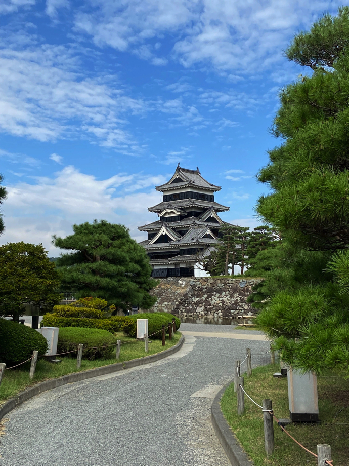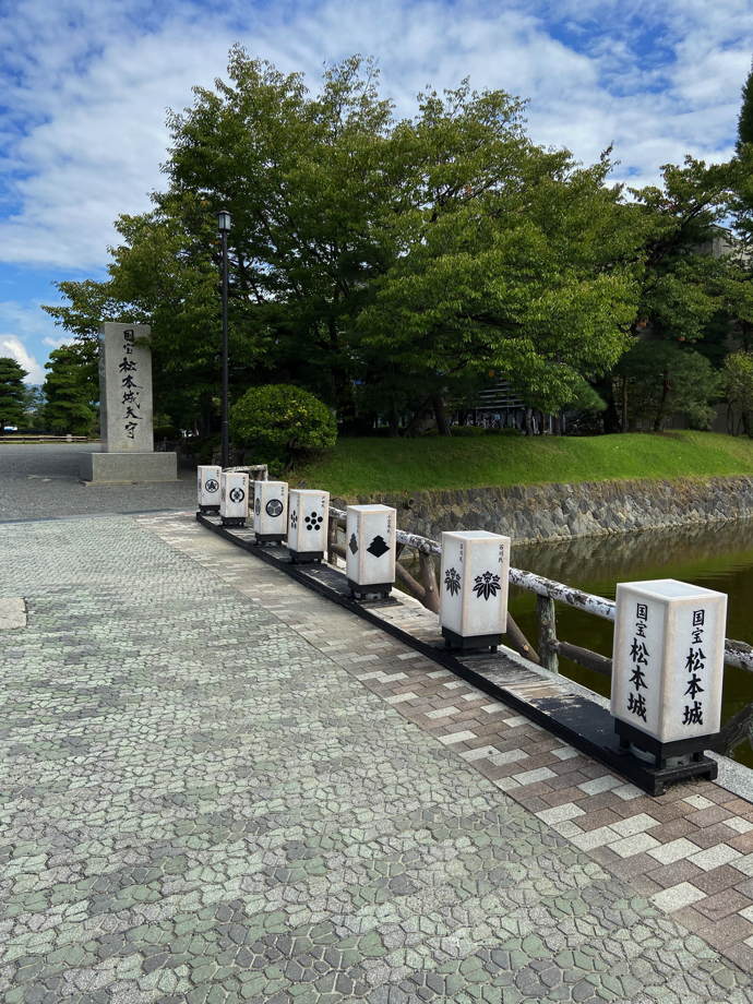 今は国宝松本城を取り巻く公園として整備されているが、この遊歩道あたりは城攻めの決戦地なのだよななどと思いつつ、お堀を渡り天守閣方向に歩いていく。視覚的には良くできた公園だと思うが、観光客がほとんどいない。散歩をする市民の姿も少ない感じがする。ご時世だなあ。