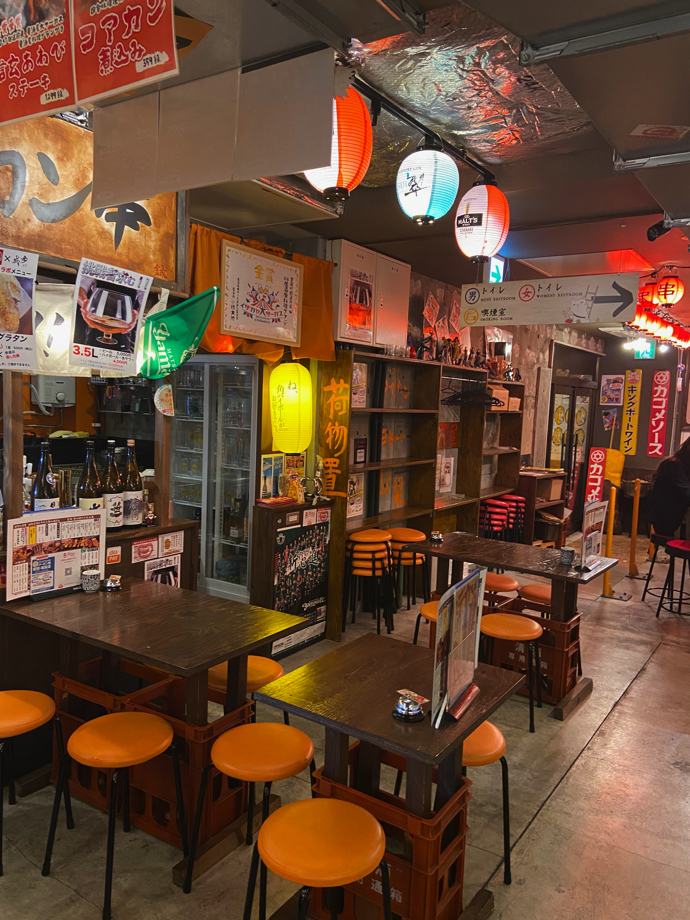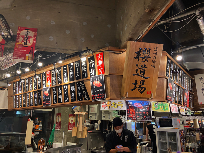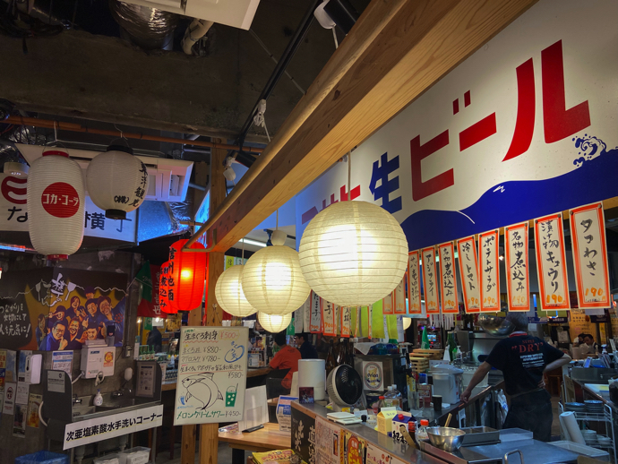 つなぐ横丁の中は小ぶりな店がぎっしりと詰め込まれた、昭和レトロ的空間で、昭和時代の居酒屋を知っている人間からすると、「あーこれこれ、こんな店、よくあったよね」という感想になる。