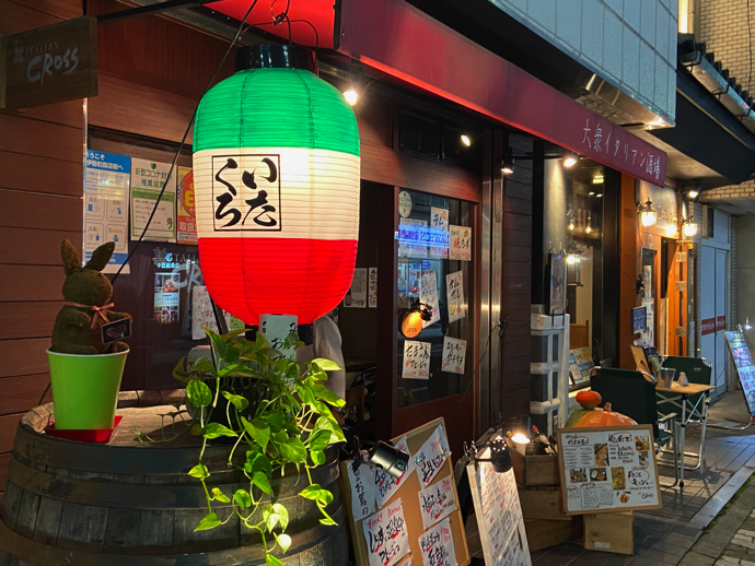 小ぶりな店だが満員だったイタリアン居酒屋。ここはぜひ入ってみたいが、今の時期よりもう少し寒くなった季節の方が楽しめそうだ。3色提灯が素敵でセンスが良い。このご時世で満席だったので、おそらく予約をしないと入れない人気店だと思う。信州野菜とジビエ料理みたいなものが期待できるかなあ。
