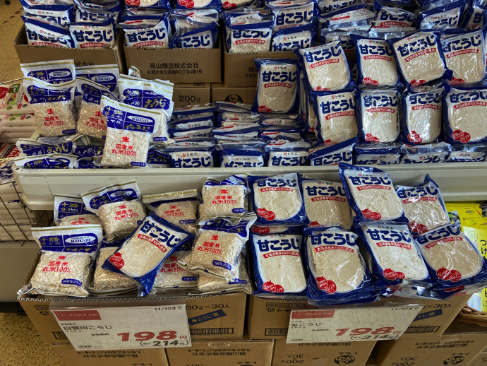そして、この山積みにされた米麹は漬物の発酵材として使われる。ニシン漬けにも使うが、それ以外に白菜や大根の漬物でも使われる、北海道獣漬物文化では必須アイテムとなっている。消費量も莫大で、白菜1キロに対し〇〇g的な計量ではなく、手で一掴みとか二掴みとかの原始的な計量法になる。ずいぶん昔のことだが秋の終わりには毎年のように漬物を漬ける手伝いをさせられた。薄ぼんやりとした記憶なので、どんな作業をしたのかは覚えていない。何かを運べとか、あれを持ってこいとかいった使い走りばかりだったのだろう。面白いはずもない。記憶が薄いのはそのつまらなさのせいだったのか。最近では、漬物をつけるのは60代70代のじいさんばあさん世代だけだろうから、もはや子供が漬物漬けを手伝う事もないだろう。子供にとっては幸せな時代になったということだ。