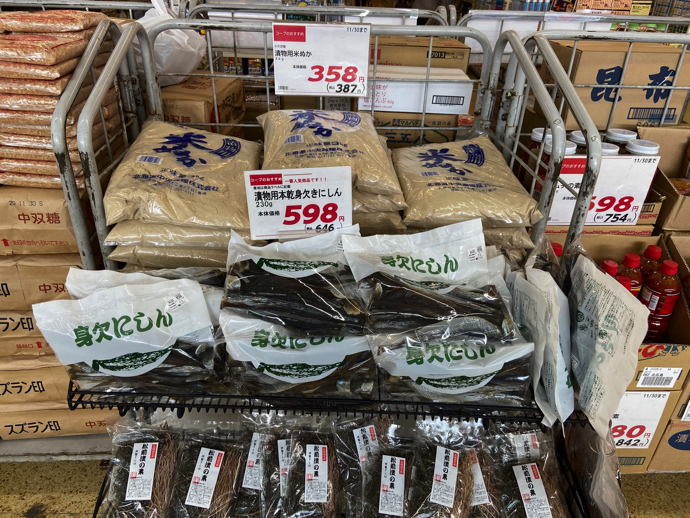 もうすっかり廃れた習慣だと思っていた自家製の漬物が、まだまだ現役なのだと思い知らされたスーパーの漬物原料売り場だ。北海道特有の漬物素材として、この身欠ニシンがある。全国的にはほとんど知られていないと思われる「ニシン漬け」の主材料だ。そもそも魚屋に行っても身欠ニシンを見つけることは難しいほど、すっかりレア商品になっている。