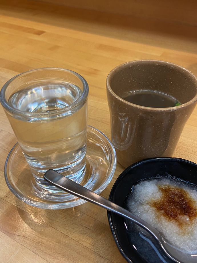 カウンターに一人で座り、もっきりを一杯注文し、好きな串を2−3本食べる。酒のおかわりをして、それを飲んだらサッと帰る。滞在時間は30分ほど。そんな飲み方が最近の好みだ。串鳥の開業以来のサービスで、お通し代わりに大根おろしと鳥スープが最初に出てくる。これもつい最近までは無料だった。今は100円になる。お通し代というよりテーブルチャージみたいなものだろう。世の中のぼったくり居酒屋ではお通し代500円だの700円だのという時代に、何とささやかな100円と思ってしまう。焼き鳥が出てくるまでの繋ぎに鳥スープはとてもお腹に優しい。