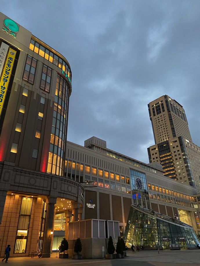 札幌駅を正面からみるとツインタワーを結んだ空中回廊という構成がわかる。札幌の繁華街の中心が大通公園付近、それも三越と丸井今井の二大百貨店を結んだゾーンだった時代は、札幌駅付近は鄙びた駅前?だった。そこに古くからあった五番館という百貨店の周りに、東急百貨店、そごうの開店が続き、駅前百貨店戦争がヒートアップしていった。その競争の中でまず五番舘が西武百貨店に変わり、結局今では西武百貨店の取り壊され空き地になったままヨドバシカメラの新館が立つ予定だ。そごうもパンクしてSCに変わった。その札幌駅前崩壊と同時進行で札幌駅の大改築が進み、駅高架下にヨドバシカメラが開店したあたりから札幌の中心地が駅前に移り始めたような気がする。新しい駅ビルの開業とともに大丸が開店して、札幌駅周辺の繁華街が大通り付近に競り勝った。丸井今井が伊勢丹三越グループの吸収されたのがその象徴だろう。