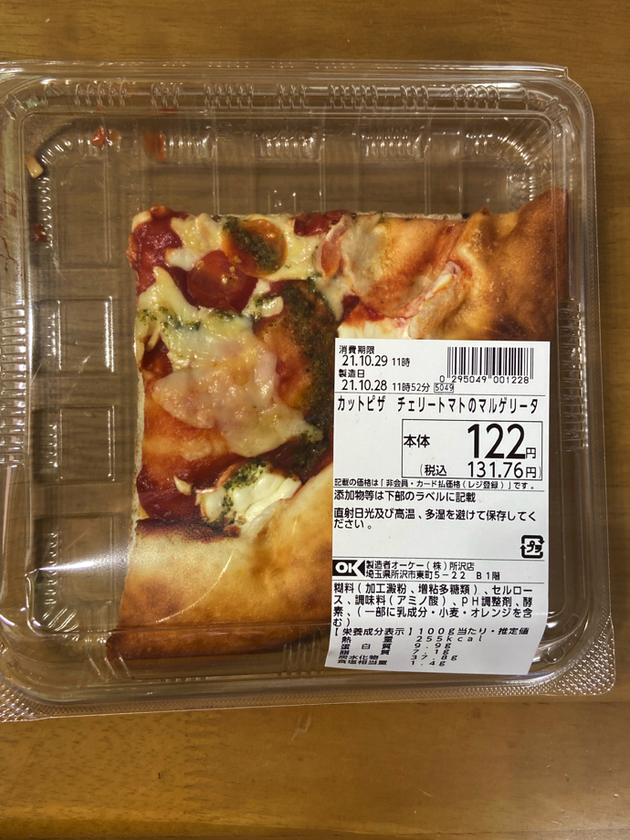 こちらは安い方で、トマトがトッピングになっている。マルゲリータとは、言ったもの勝ち的なネーミングで、トマトソースとチーズとバジルの3点セットであれば、マルゲリータと言い張って良いと思う。カレーパンといっても中のフィリングがキーマカレーであったり、野菜ごろごろカレーだったり、牛すじカレーだったりするようなものだ。