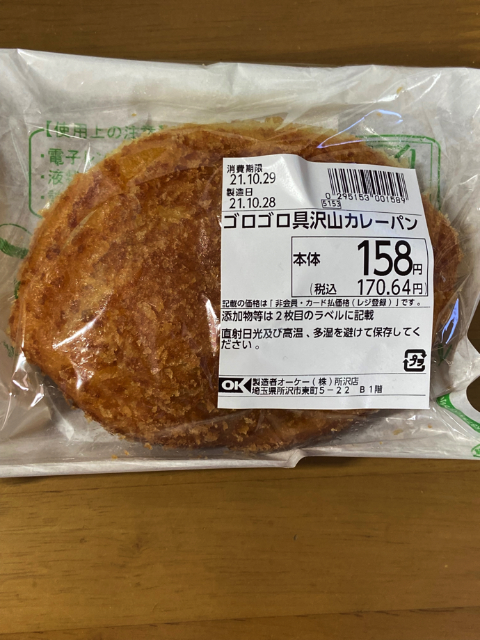 工場生産ではないスーパーのインストアベーカリーなどでは150円越えもあるが、それは珍しい。そうした市場価格感からすると、ちょっと高めの値付けのように見えるのがこちらのカレーパンだ。ただ、食べてみるとそれなりに納得できる。安いカレーパンにありがちな、中がほとんど空洞で具が少なくて騙された感みたいなことは全くない。ぎっしりと具が詰まっている感じがある。カレーパン発祥と言われる東京の下町までカレーパンを買いに行ったことがあるが、そこも具沢山だった記憶がある。やはりカレーパンの価格は、中の具材の量に比例しているのだろう。100円の空洞パンよりは50円高くても中身がいっぱいの方が良いと思う。