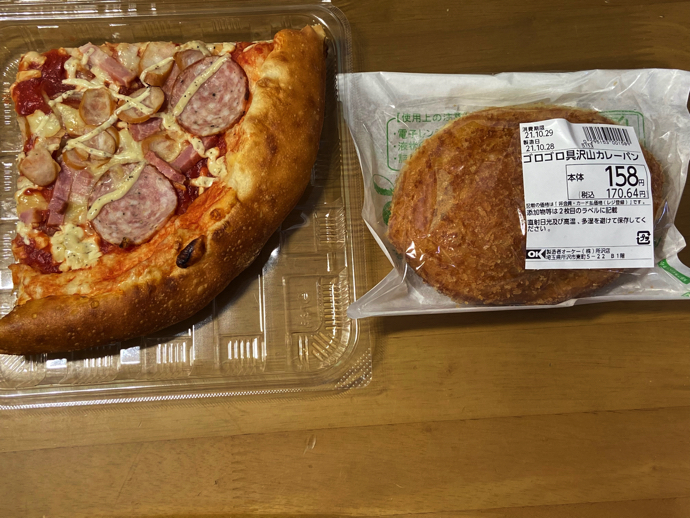 ついでに、このお手軽価格のピザと調理パンの代表選手みたいなカレーパンを比べてみた。コンビニやスーパーで売られているカレーパンは比較的お安い。100円+アルファといった価格帯で収まっている。150円を超えることはあまりない。