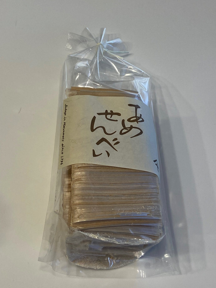 その後に駅から10分ほど歩いたところにあるおしゃれなお店で「あめせんべい」を買った。綺麗な箱に入っているが、手に取ると妙に軽い。この箱の大きさであれば、それなりにずしっときそうなものだが。