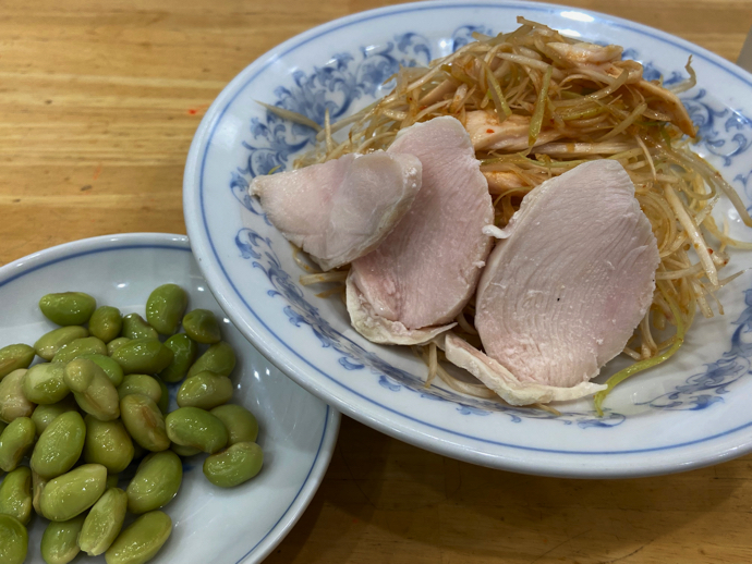 あとは、何故か「むき枝豆」が単品で定位置を占めている。メニューを見ると、会長おすすめらしいが、なんだか味が薄いので中華料理としてコメントしようがない不思議なもの。豆は豆の味しかしないのも困ったものなので、ラー油とか酢とか醤油とか卓上にある調味料を適当にかけてみた。どれをかけても、豆は豆という結果だ。仕方がないか。会長お勧めのわけがよくわからないが、この豆を入れた炒飯が「推し」らしいので、それは次の機会にでも試してみよう。
