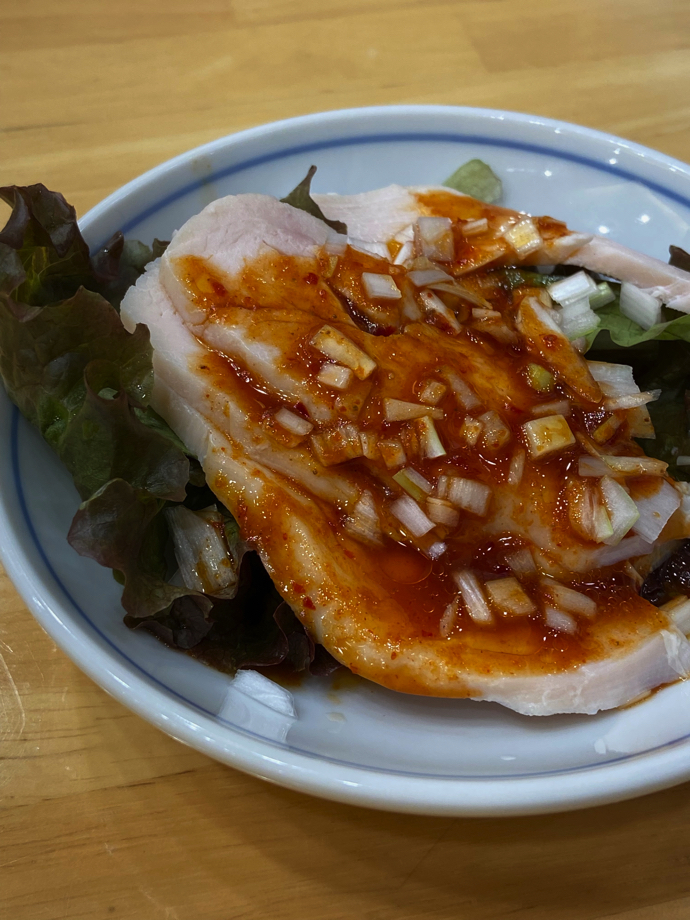 10月のメニューで登場したもので気に入ったのは二品あった。一つ目は昔は売っていたような気がする(今は定番では無くなってしまった)キクラゲと卵の炒め物だ。これは是非にでも定番化して欲しい秀逸さだった。二つ目はネギとりチャーシューで、ネギチャーシューの鳥版だ。ネギチャーシューも同じだが、相変わらずネギたっぷりというか、ネギ多すぎるでしょうと言いたくなるモリモリのネギだった。