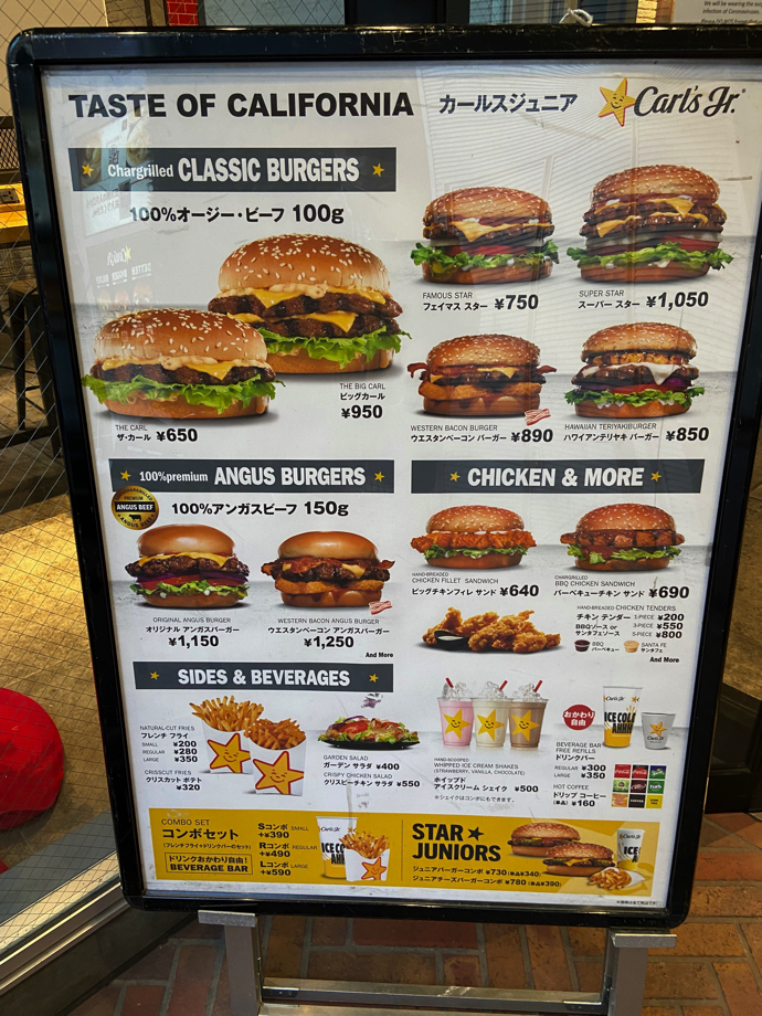 ただ、店頭のメニュ看板を見て、また腰が抜けそうになった。確かに、ここのハンバーガーはうまい。カリフォルニアに仕事で行った時はずいぶんお世話になった。たが、こんな値段だったか?と思わず見直してしまった。