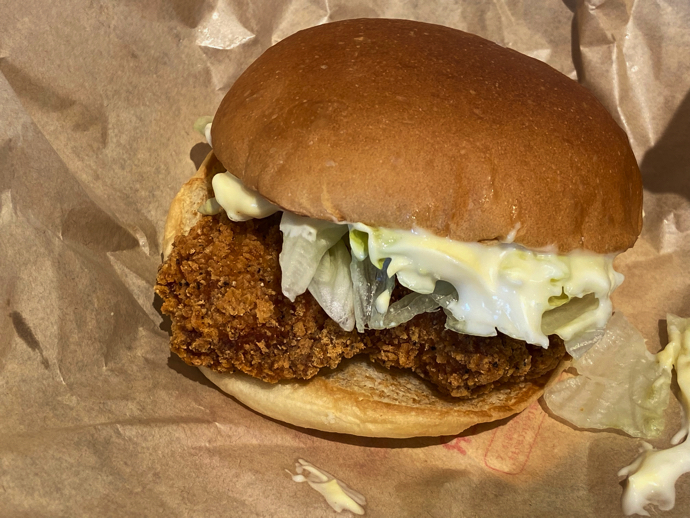 揚げたてのチキンが挟んであるので、普通にうまい。あつあつ感でいえば、某大手ハンバーガーのチキンバーガーより、出来が良いとも思う。ただ、どこかで食べた感が強く、オリジナルな感じがもう一息欲しい。