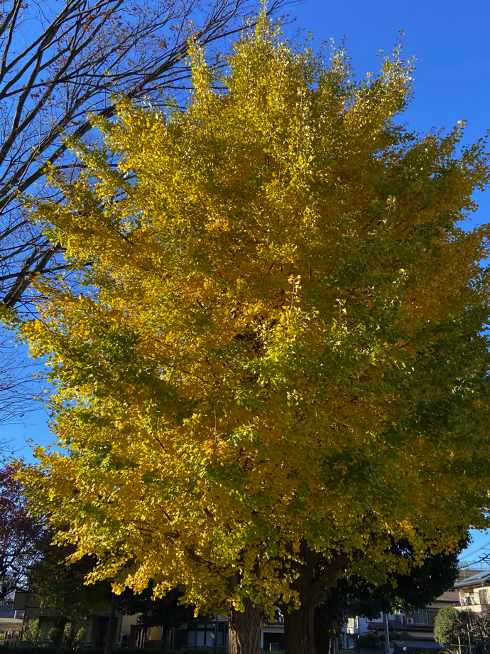 毎年11月下旬になると、晴れた日にはイチョウを探して散歩に出かける。紅葉の季節というが、赤い葉っぱよりも黄色い葉っぱが好きだというのがイチョウ探しをする単純な理由だ。自宅周辺には桜の木・コブシの木・ケヤキは多いが、イチョウはだいぶ離れた公園に行かなければ見つからない。