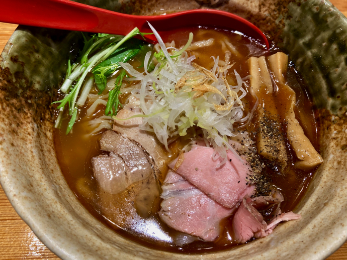 新宿歌舞伎町の端っこにあるカウンターだけのラーメン屋「たかはし」が、やはりぶっちぎりで一番に認定。顎出しの濃厚スープ(これで塩味スープだ)と、もっちりとした麺の絡みぐらいが最高で、おまけにチャーシューは2種類。低温調理の柔らか焼豚と煮豚の対比が素晴らしい。太メンマも好みだ。いつも忘れてしまうが、これに海苔を追加トッピングするべきなのだ。