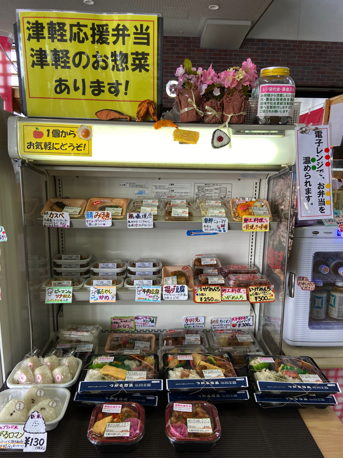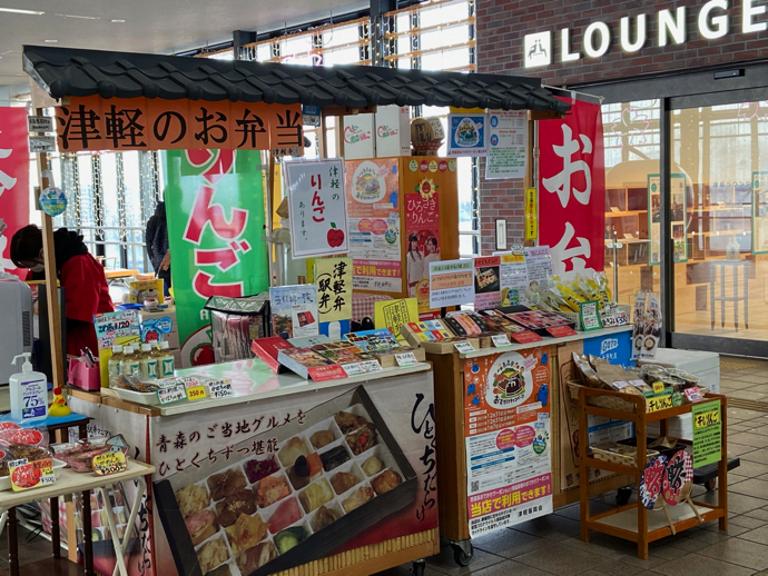 その弁当売り場の横に津軽応援弁当というものがあり、これは駅弁というよりローカル客向けの、普通のお弁当だった。これもなかなか捨てがたい魅力あふれるお弁当だ。輪ゴムで蓋が止められているところなど、手作り感が溢れている。駅弁と合わせて買おうかと随分迷ってしまった。流石に弁当2食を食べる根性がなく諦めたが。
