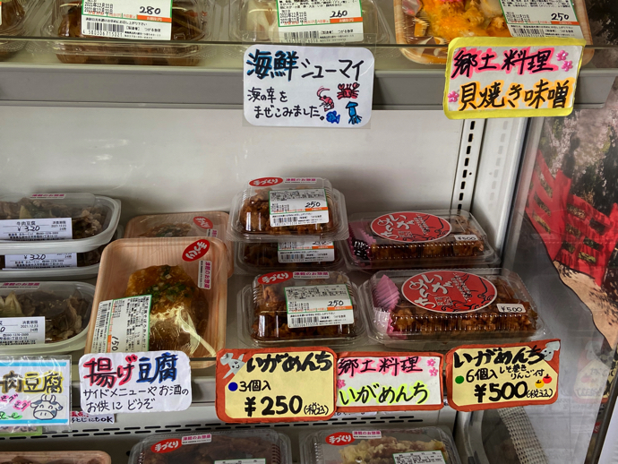 弁当の隣でお惣菜も販売中だった。どれもこれもうまそうだが、青森郷土料理の貝焼き味噌まで売られているのはびっくりだった。イガメンチは、この辺りでは絶対定番的なお惣菜だろう。ただ、この後に駅近くの市場に行ってイガメンチをゲットする予定だったので、ここでは何も買わなかった。もし、弘前泊まりで旅をするのであれば、この売り場であれこれ買い込み、つまみに弁当に夜食になどあれこれ使い道はありそうだ。ここで惣菜を買い込んでホテルでのんびり一人酒などというのもありだなと思った。もちろん、そういう時のために、いつもの旅行鞄の中には箸とナイフは常備している。