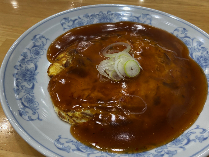 今回は、天津飯ではなく、その上に乗る蟹玉だけを単品注文した。酒の肴に向いているとメニューには書いてあったが、確かにそうだろうという味だった。白飯なしではちょっと味が濃いかもしれない。蟹の存在感は微妙だが、卵料理としておいしいものだ。