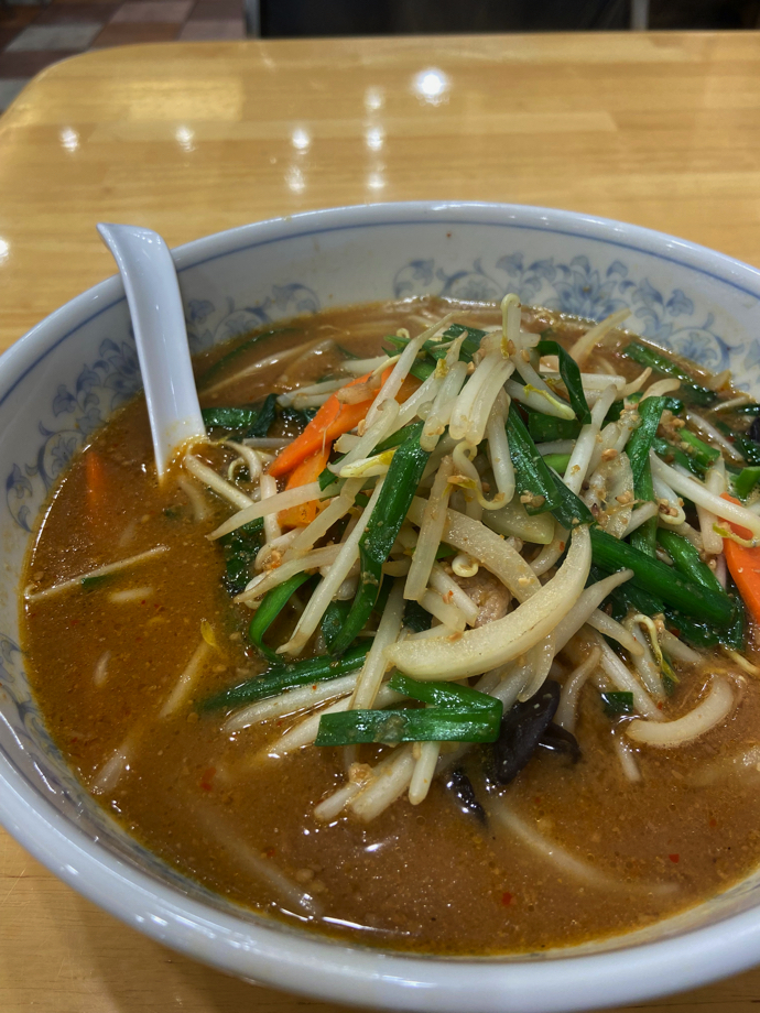 そのあとは冬になると食べたくなる味噌ラーメン(定番)を注文した。満洲の味噌ラーメンは肉けなしで、野菜炒めが乗ったタンメン風だ。味も比較的あっさりなので、味噌ラーメン的濃厚さには欠ける。しかし、するすると入ってくるから、軽めのラーメンが好みの方には向いている。いかにも町中華という感じの味だが、それがこの店の主張だといえばそうだ。普通にうまいではなく3割うまいが、満洲のキャッチフレーズだし・・・。