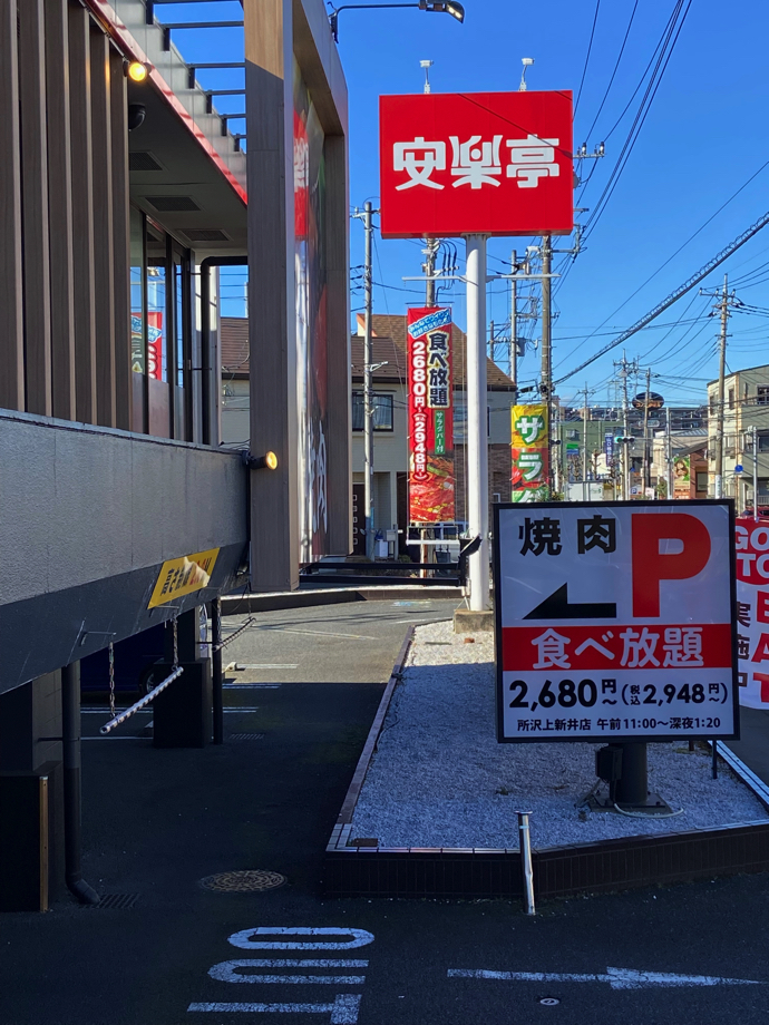 最近の日課になりつつある長距離歩行の目的地に、歩いていくとちょっと遠いレストランを選ぶことが多い。無目的に歩くのはしんどいので、食事をお目当てに遠くまで歩くという自己欺瞞というか、情けない目標設定というか・・・。まあ、歩いて疲れたら美味しいものを食べて、また帰ってくるのに歩いて疲れて、みたいブラック企業にありがちな変形労働制的騙しだ。その目的地に焼肉屋を選んてみた。埼玉県が地盤で長年お世話になっている焼肉ファミレスだが、この店の100m先に愛知県地盤の食べ放題焼肉店がある。焼肉競合激化地帯なのでたまには覗きに行ってみようという野次馬根性もあった。当然、競合対策で食べ放題もやっているが、昼飯で食べ放題もないだろう。