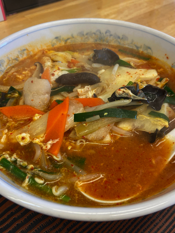 ただ、日常遣いのぎょうざの満洲本店では、この定番ルーティンを守らないことが多い。「旨辛菜湯麵」を頼むことが多いのだが、旨辛という割にあまり辛くはない。野菜が多いからタンメン扱いなのだと勝手に思っている。ただ、定番メニューにタンメンもあるので、その変形ということだろう。他の中華料理屋やラーメン屋では見かけたことがないので、満洲オリジナルと言って良い。マイ定番ラーメン的なもので、月に一度は食べたくなる弱中毒性があるようだ。