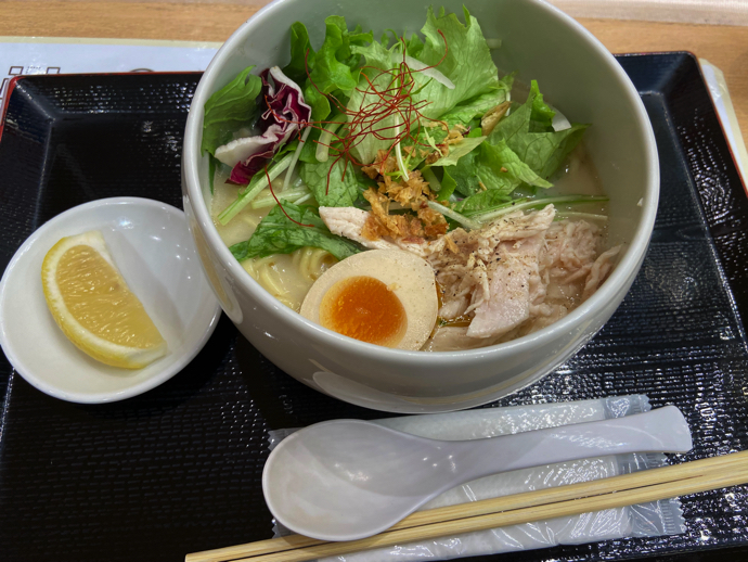 鶏白湯はラーメン界でもヘルシー部門というか、濃厚だがさっぱりみたいな位置付けにあると思う。野菜たっぷりのトッピングやレモンを絞って味変をするあたりは、明らかにヘルシーイメージを醸し出す。