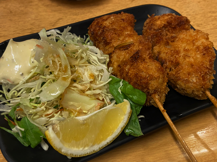 大都会池袋にある「大都会」。知る人ぞ知るセンベロの聖地らしい。超省エネ運営で低価格を実現しているので、コロナ前は繁盛していたようだが、ようやく復調してきた感じがする。ただ、寒い季節になってもドアが開放モードであるあたりが、まだまだコロナな日々ということだろう。だから、この季節は背中が寒くならない席を確保するのが一番重要なポイントになる。